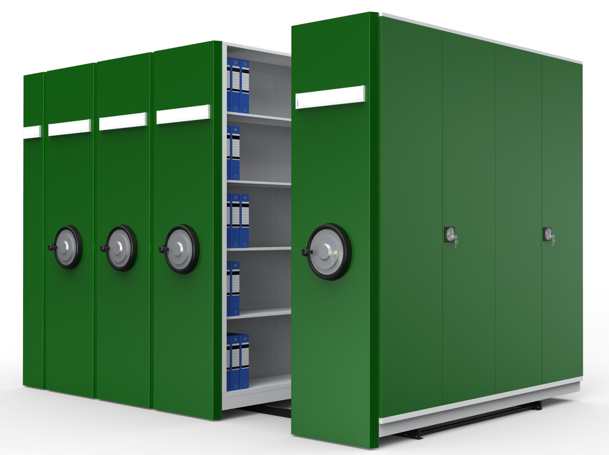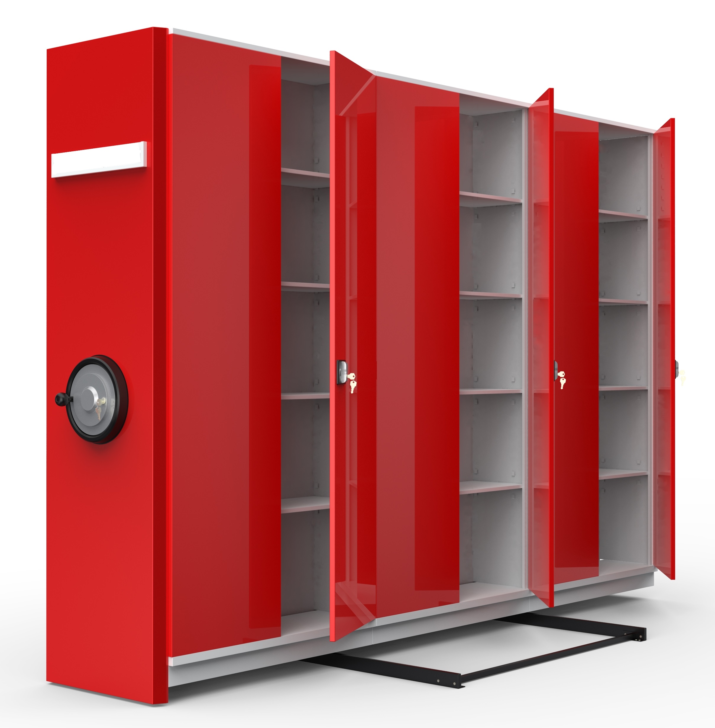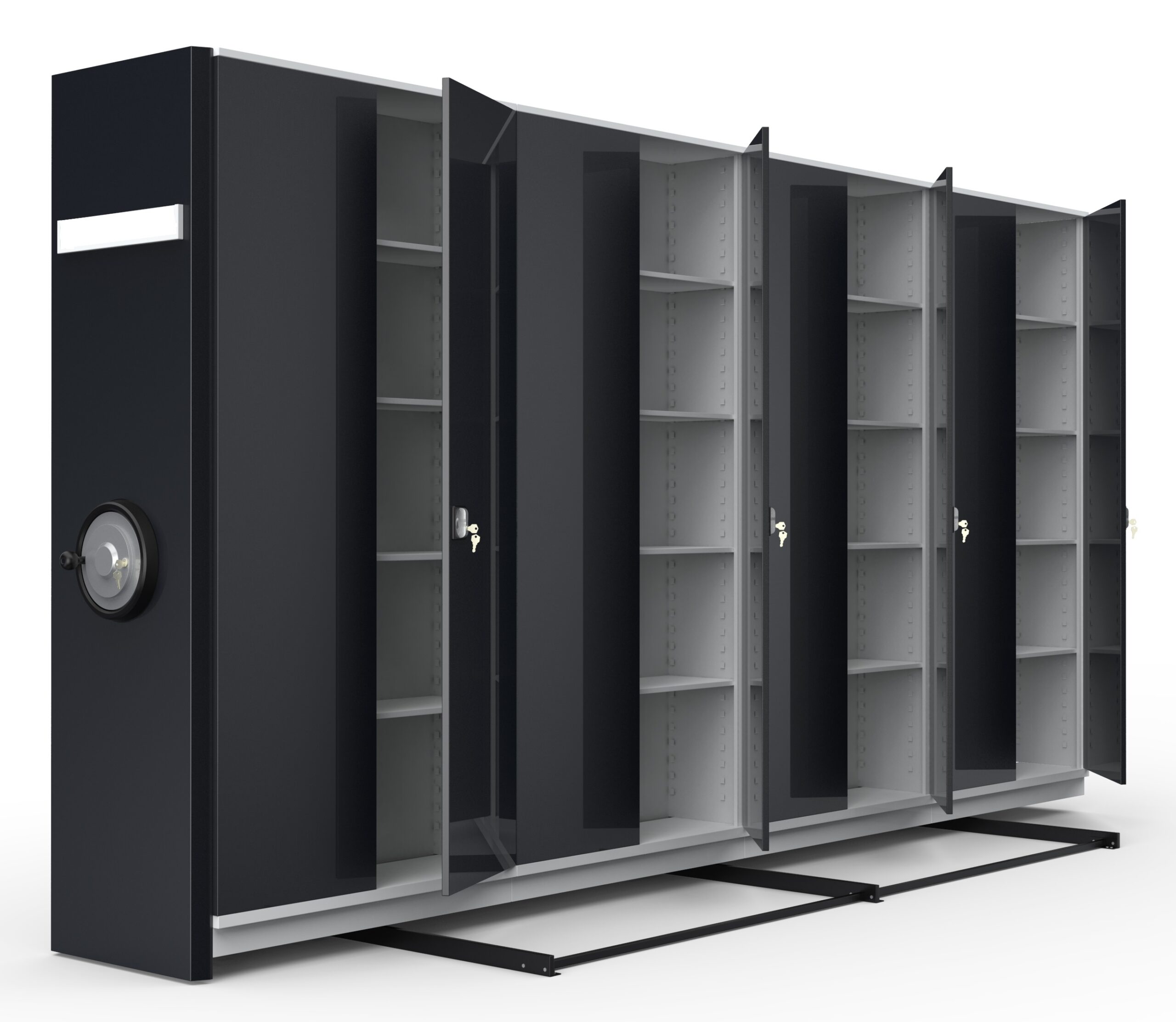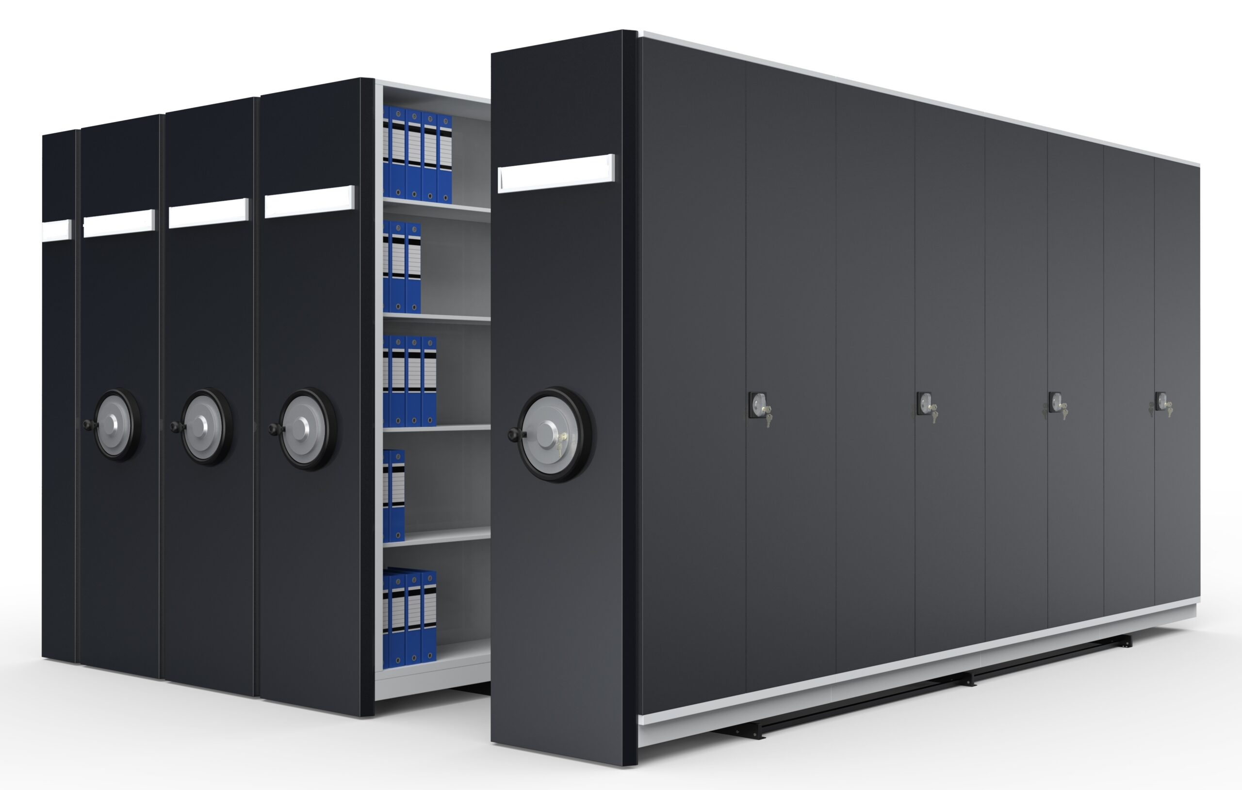 Raylar arasında kaydırma mekanizması sayesinde dolapların önüne geçmeden dahi içerik düzenlenebilir. Bazı sistemlerde elektronik kontrol panelleri ile hangi rafta hangi dosyanın olduğu anında görüntülenebilir.Güvenlik: